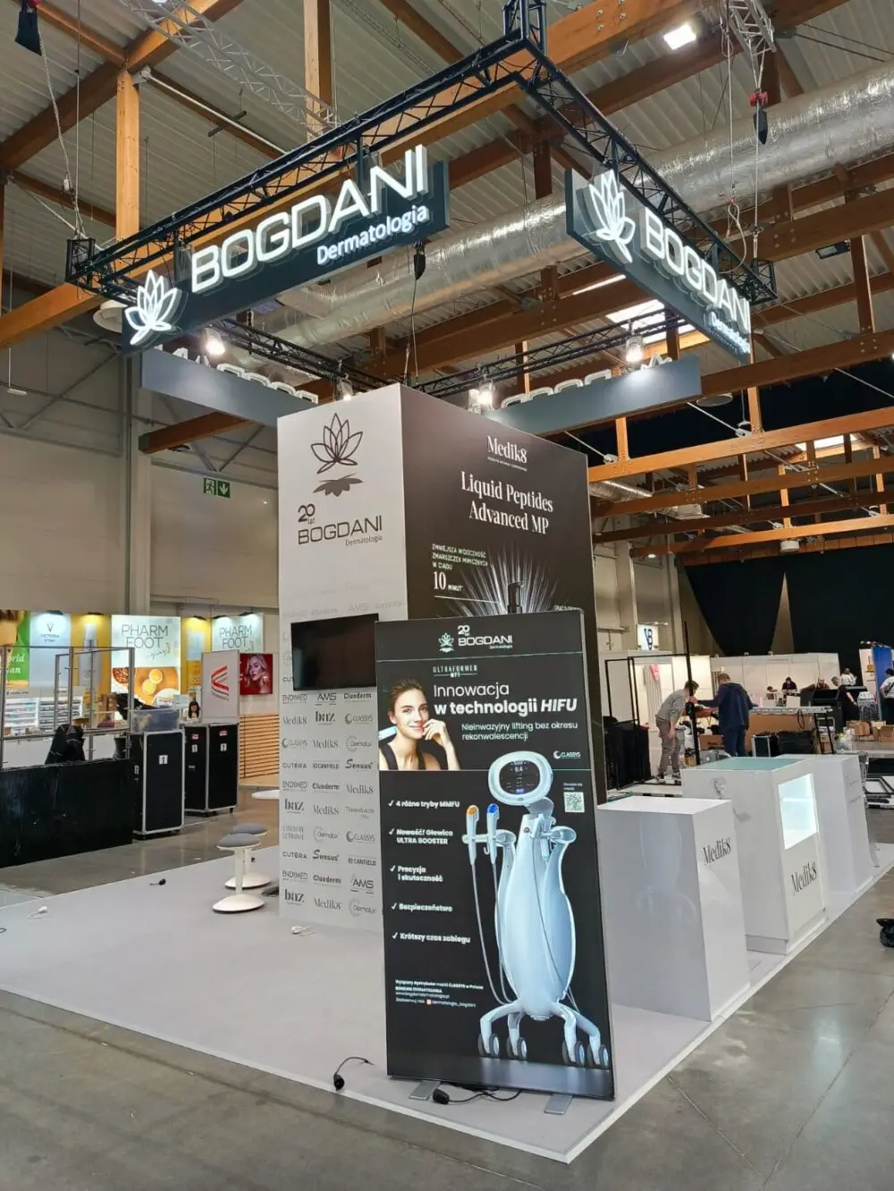 Produkujemy wszystkie elementy niezbędne do realizacji zabudowy targowej. Poza ściankami i innymi elementami stałymi zajmujemy się wyposażeniem, oświetleniem, dekoracjami oraz pełnym zapleczem graficznym.